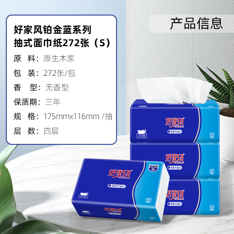 Good Home Wind Platinum Blue 4 floors 272 Bags Superior products native wood pulp Pulp Paper Scode Paper Towels Home High Price-performance-Taobao
