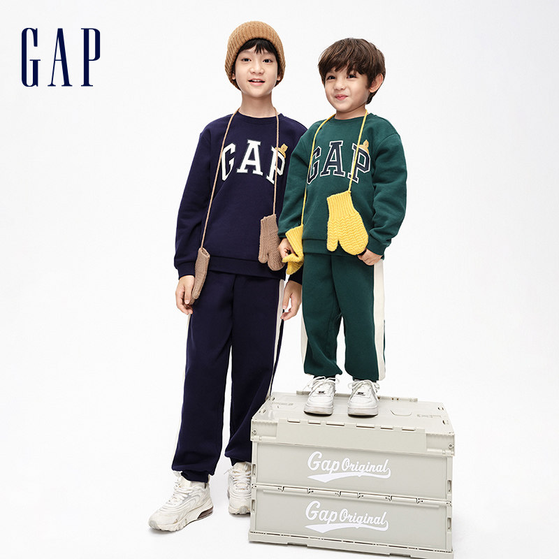 Gap Boy Winter 2023 New LOGO Plus Suede Split Motion Two Sets 856100 Children Warm Suit-Taobao