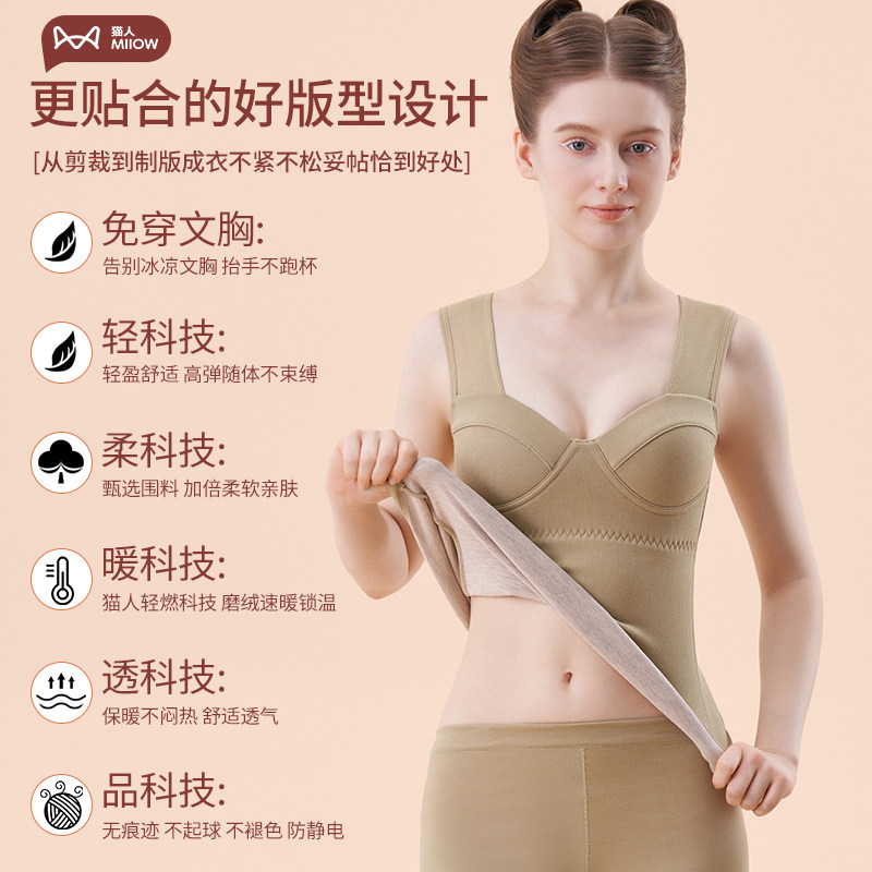 Cat person thermal underwear Female fever vest Develvet plus suede thickened with chest cushion integrated text bra Nitch winter-Taobao