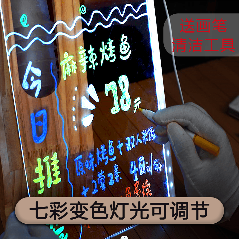 Hanging fluorescent plate billboard electronic small blackboard handwriting luminous plate LED pendulum stall with lamp card advertising display cards-Taobao
