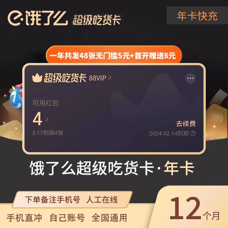 Hungry Super Eating Card Hungry member hungry Voucher Coupon Coupons National Universal 12-Month-Taobao