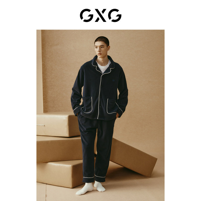 GXG men's double-sided Ollie velvet thickened topstitch home clothes for boys machine washable couple pajamas can be worn outside in autumn and winter