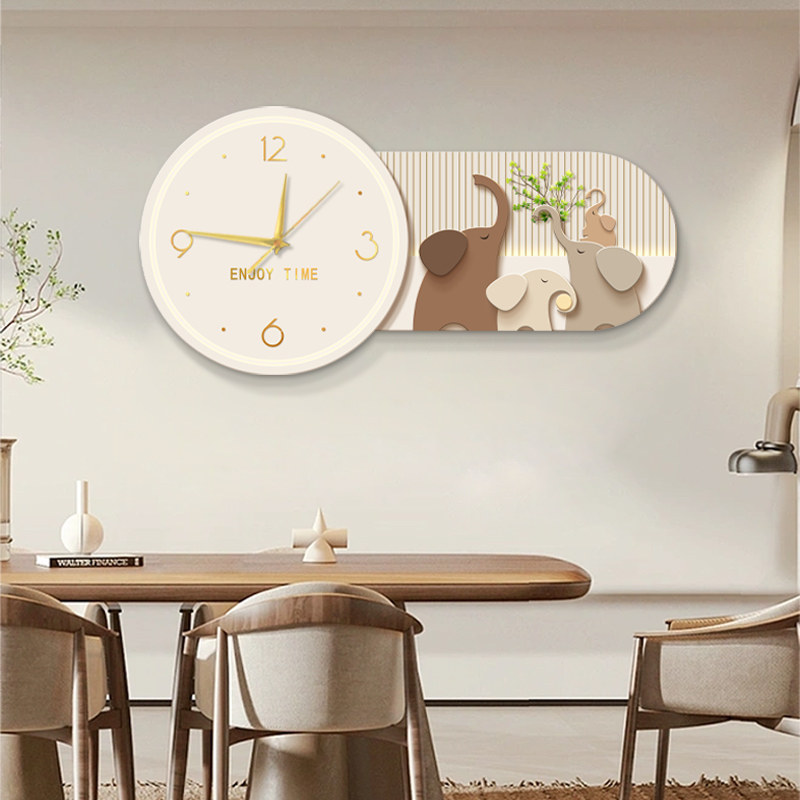 Auspicious Ruyi Restaurant Decoration Painting With Watch Dining Room Hanging Bell Mural Paintings Upscale Creative Living Room Table Clock Hanging Painting-Taobao
