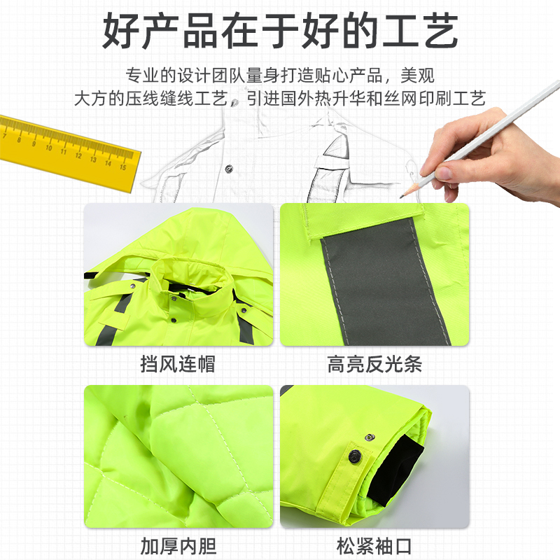 Reflective cotton clothes Traffic jacket Working clothes Cotton coat construction 2448 riding winter Custom logos Security Sanitation-Taobao