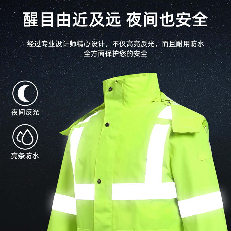 300D black green waterproof reflective cotton clothes 300D fluorescent green waterproof reflective cotton clothes (PU coating) encrypted oxford cloth waterproof reflective cotton clothes waterproof reflective fur collar jacket plus suede (black green cover)
