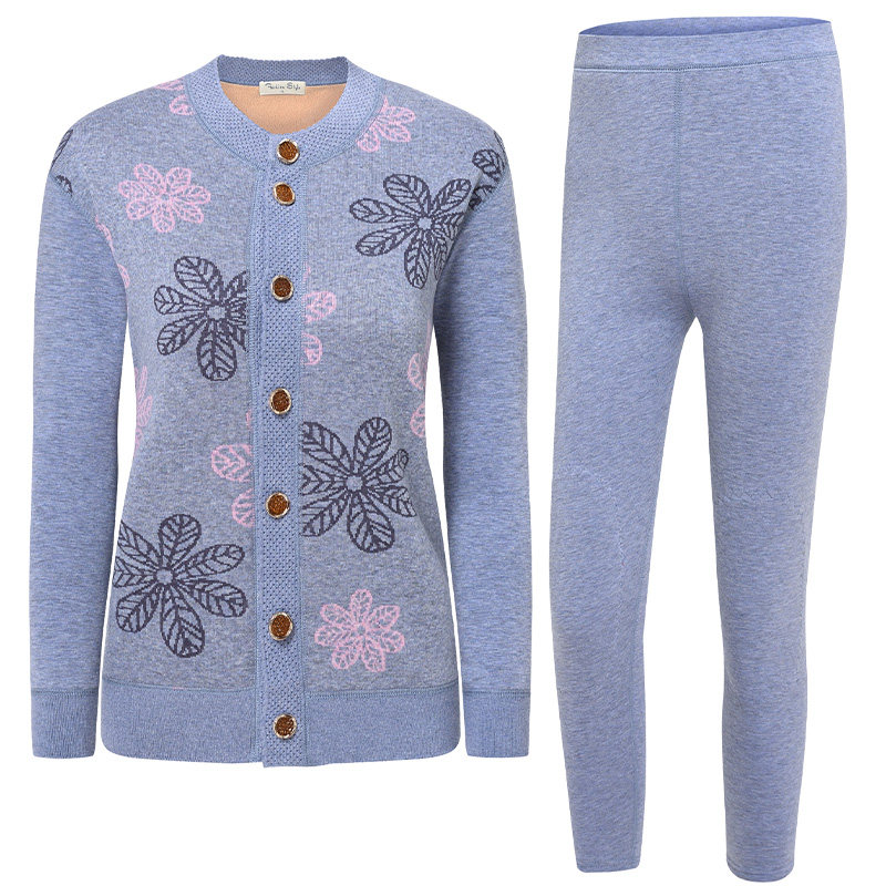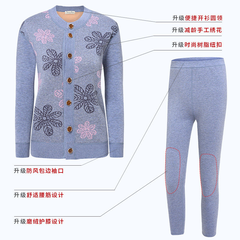 Mid-elderly cardio-hoodie warm underwear suit for men's grandparents Warm Clothes Woman Cardiovert Thickening mom-Taobao