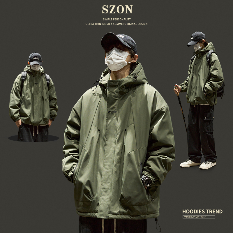 Jacket Man Autumn Winter New American Tandem Cap Loose Contour machine Assault Clothing Lovers Tide Cards Thickened Cotton Clothing-Taobao