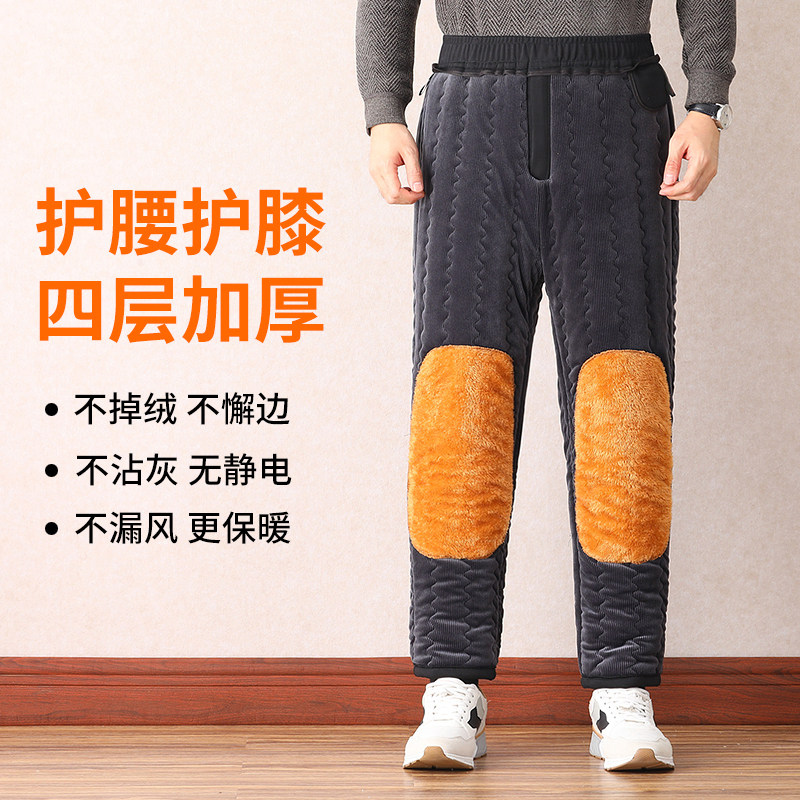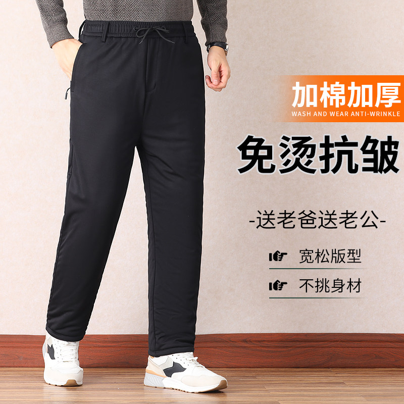 Winter Dad Cotton Pants External Wear Middle Aged Plus Suede Pants Male Thickening Northeast Warm Windproof Kneecap Old Man Winter Dress-Taobao