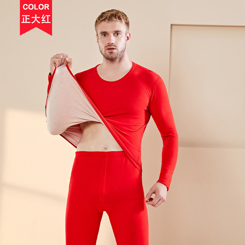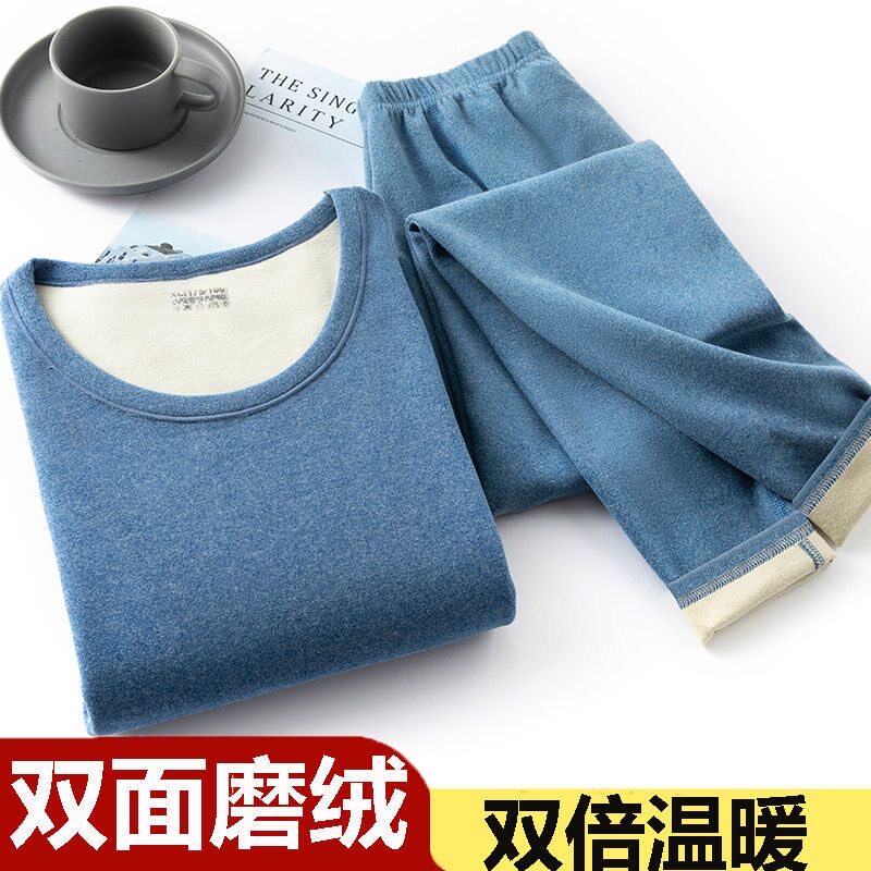 Winter Develour Plus Fattening Code Plus Fleece Thickened Fat Men Warm Lingerie Suit Slats Undershirt Autumn Pants-Taobao