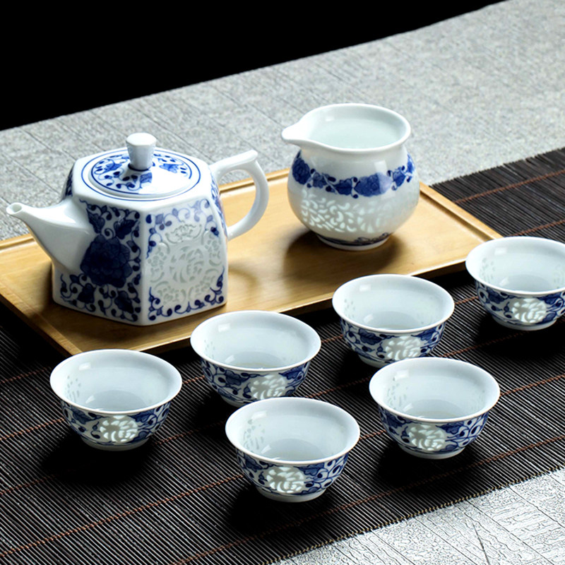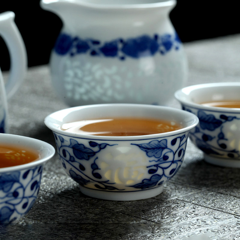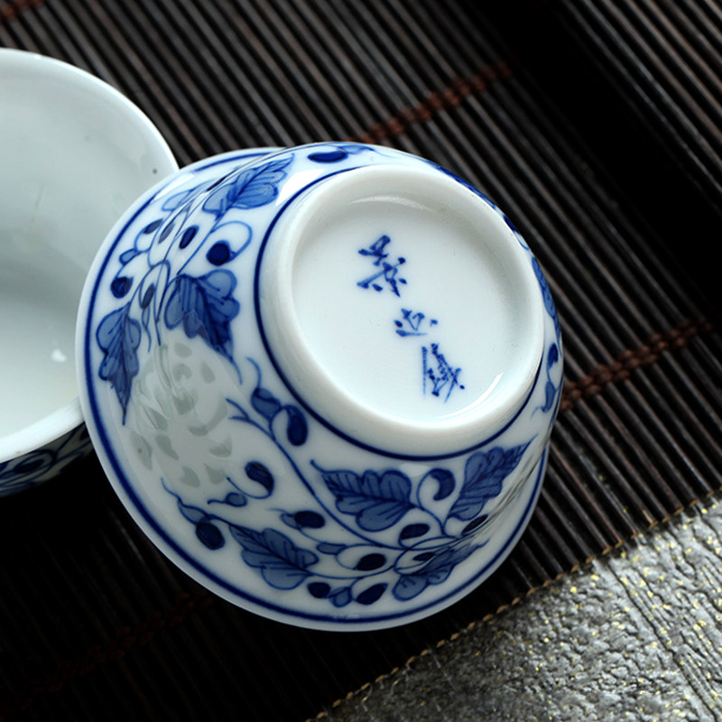 Jingdezhen handmade hand-painted high-end green flower glazed under color Lingang tea set to give gift box tea cup lid bowl tea deity-Taobao