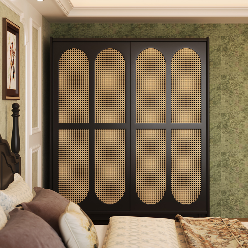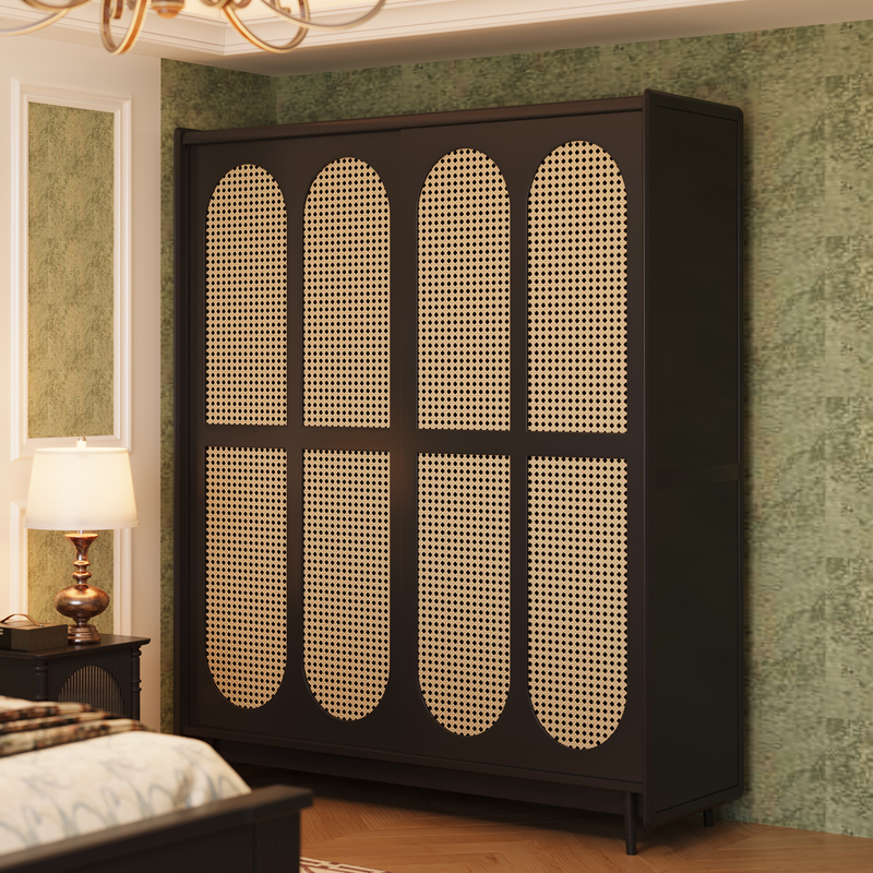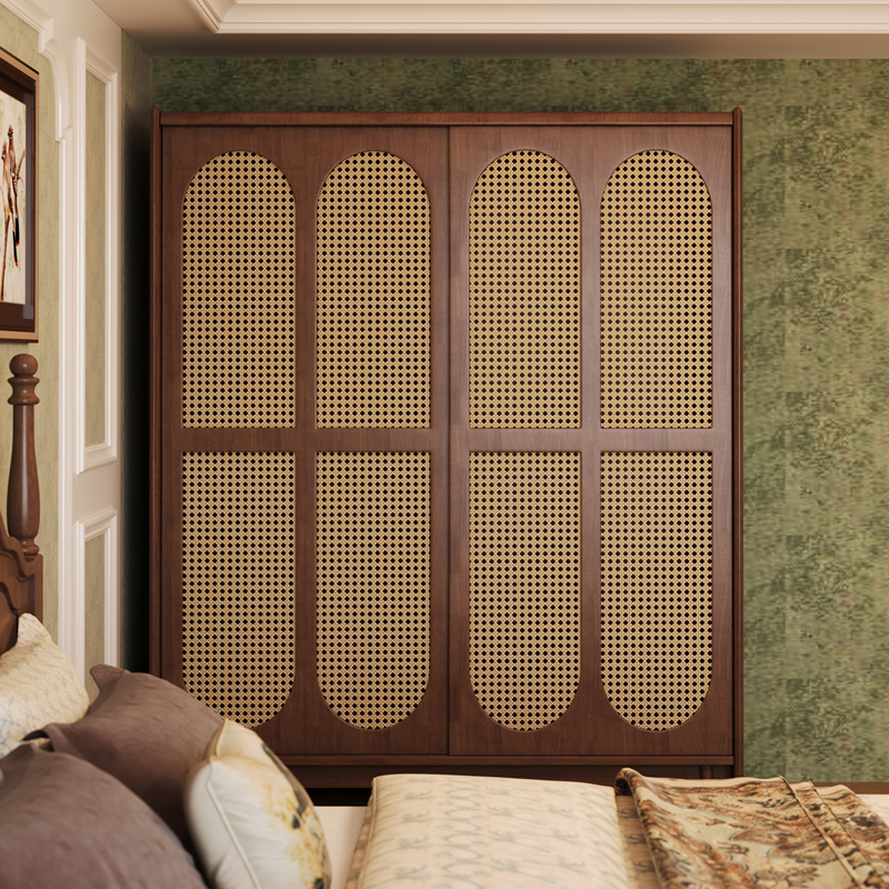American retro solid wood wardrobe Home Bedroom Pushing Ramen Rattan rattan knitted big wardrobe new net red hanging wardrobe wood closet-Taobao