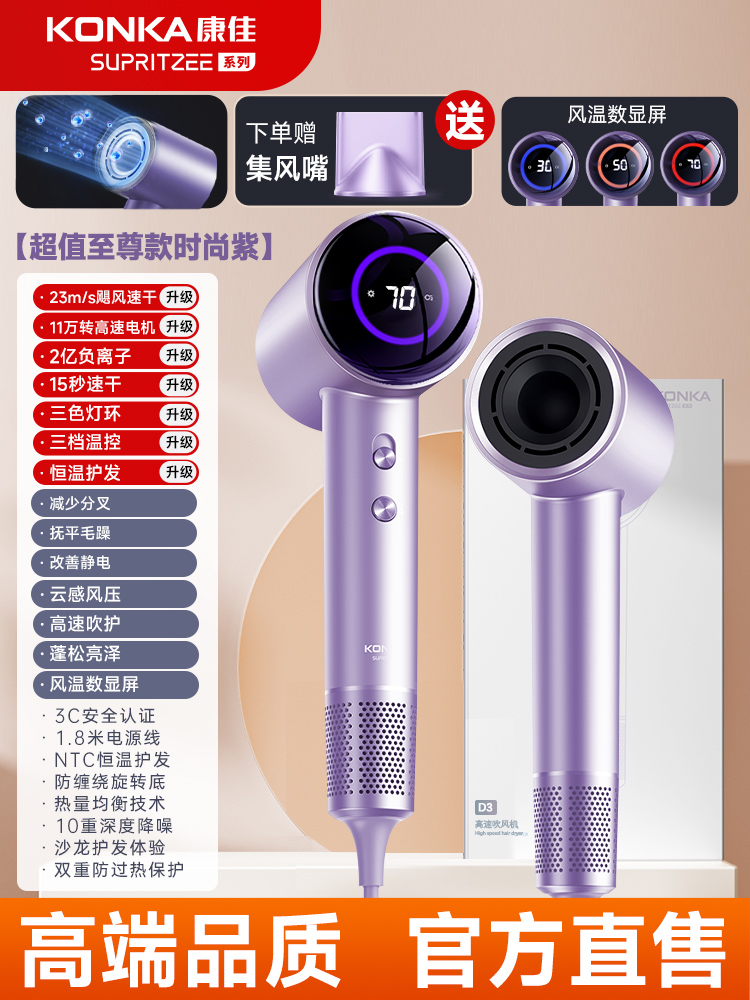 (flagship-high speed ash) 1 500 million negative ion 28 s speed dry 80 thousand turn high speed motor 20m high speed blow three-stop temperature-controlled tricolour lamp ring (Flagship-High Speed Purple)