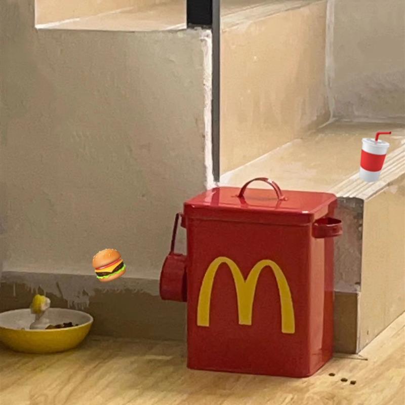 Small cat grain bowl (ceramic resin material) wheat door dog food barrel (send waterproof sticker sealant ring) PPKP building block cat grain bowl (send stainless steel inner bowl) M sticker (waterproof large number) red garbage can