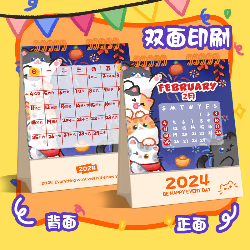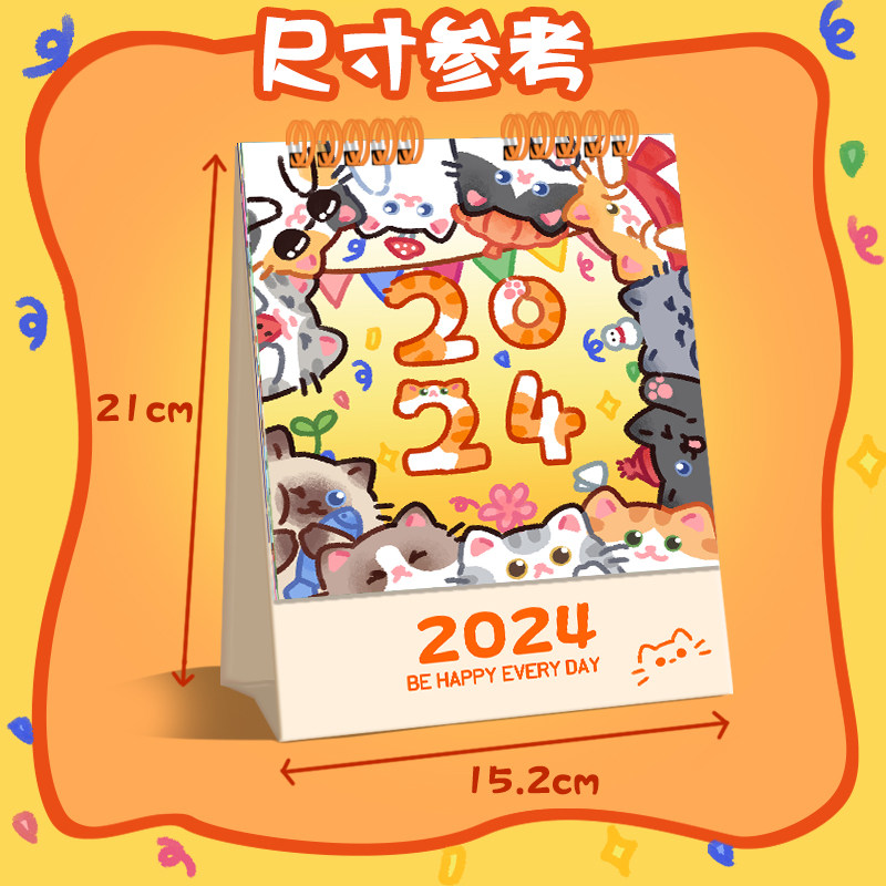 Meow Small Fish Original Cat Desk Calendar Full Color Original 2024 New Desktop Calendar Lovely Giveaway New Year Gift-Taobao
