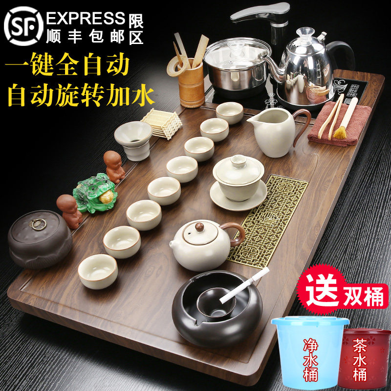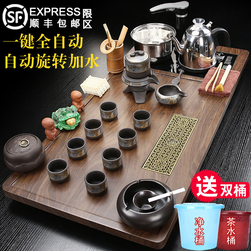 A complete set of purple sand tea sets, fully automatic kettle, integrated tea tray, home living room, Ru kiln tea making Kung Fu tea table