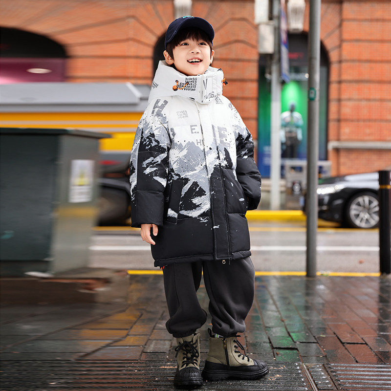 Children's down clothes boy mid-length 2023 new boy's winter clothing thickened white duck suede jacket CUHK Tong gradient-Taobao
