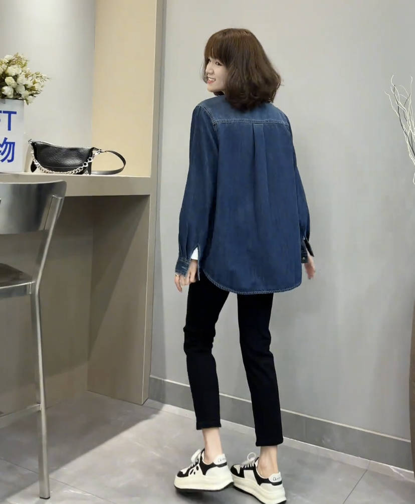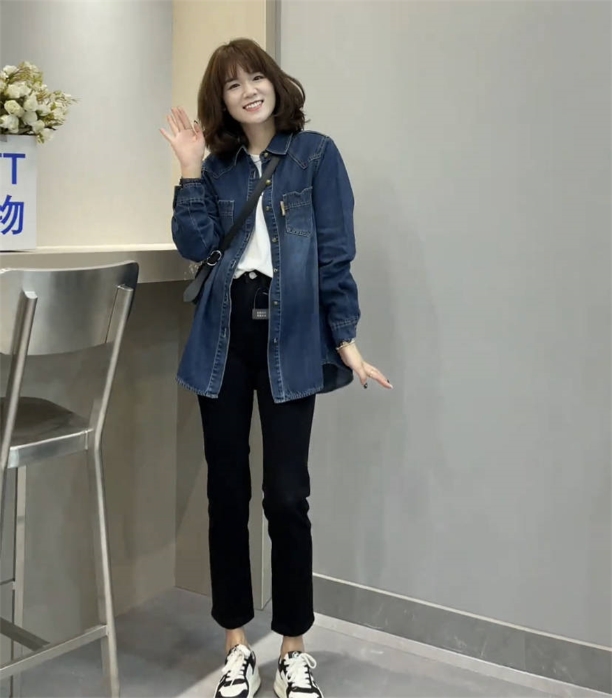 Gush Denim Shirt Woman Autumn Winter 2023 New Loose Design Sense Stack Wear Jacket Casual Thickening Lining Coat-Taobao