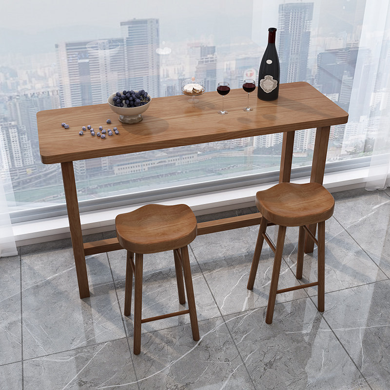 Full solid wood bar table and chairs combined home minimalist living-room balcony with window high-foot long strip table light lavish bar table-Taobao