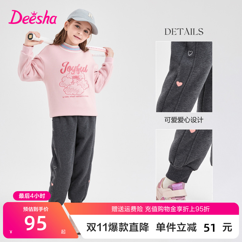 yz Dessian girl pants plus suede 2023 new winter dress girl big boy pants sweatpants cotton pants children sports pants-Taobao