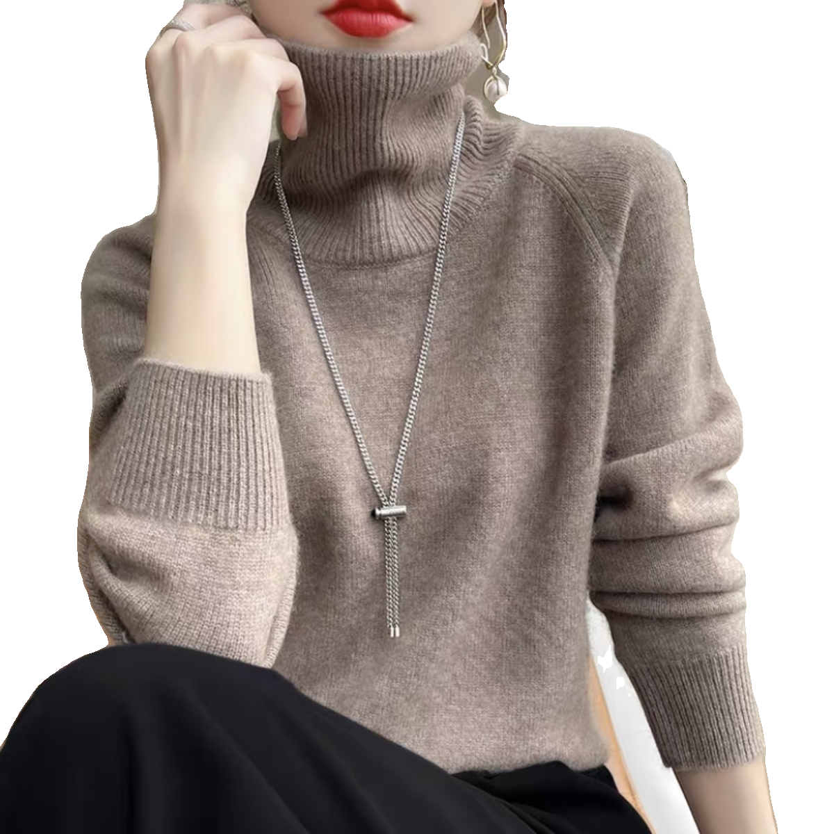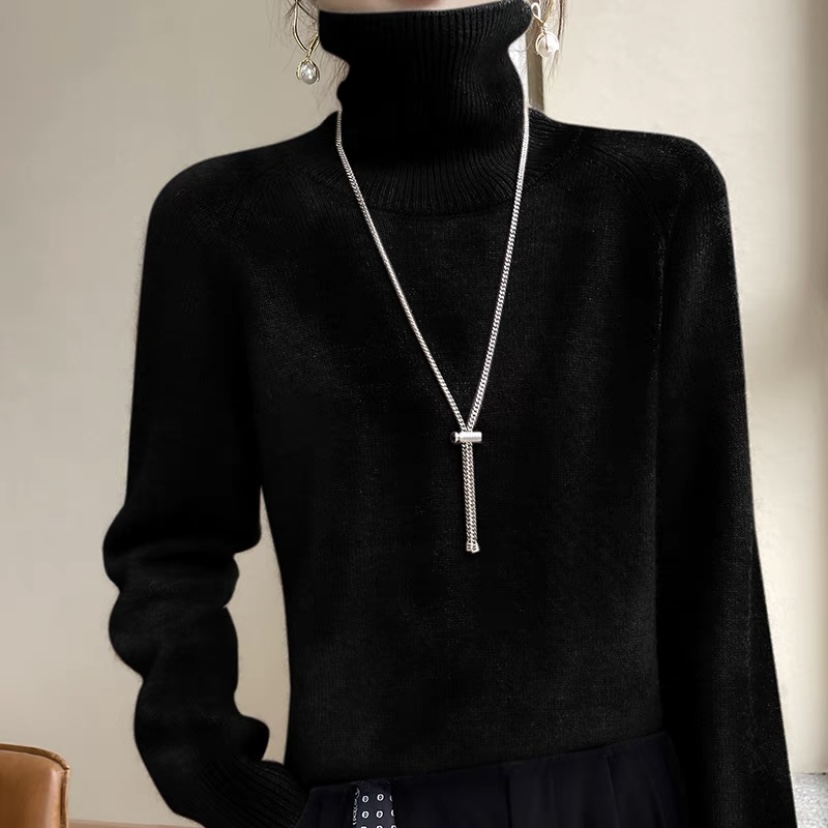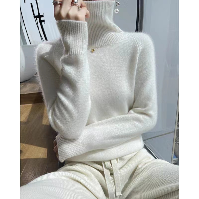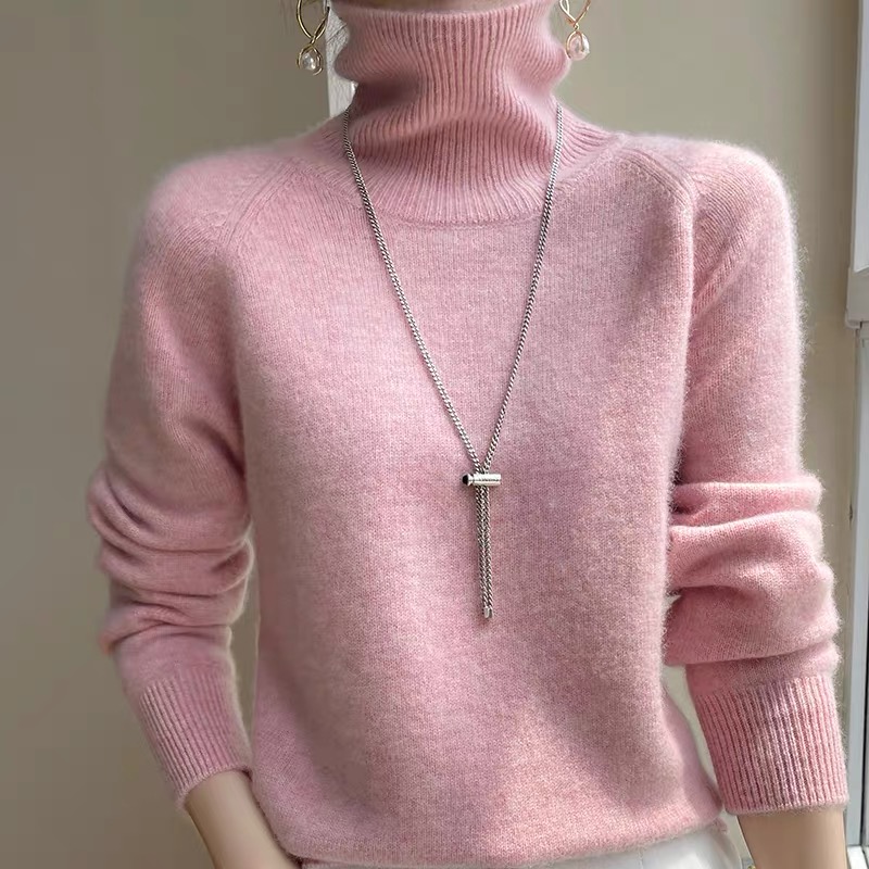 City of Ordos 100% pure cashmere sweatshirt female high collar knit loose sweater pure colour sleeve head slats undershirt autumn winter style-Taobao