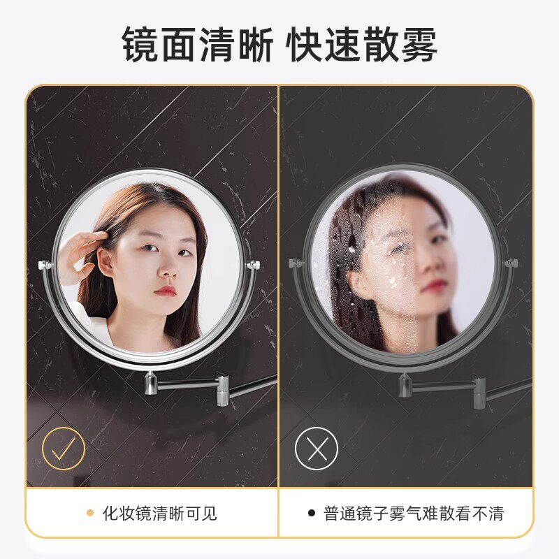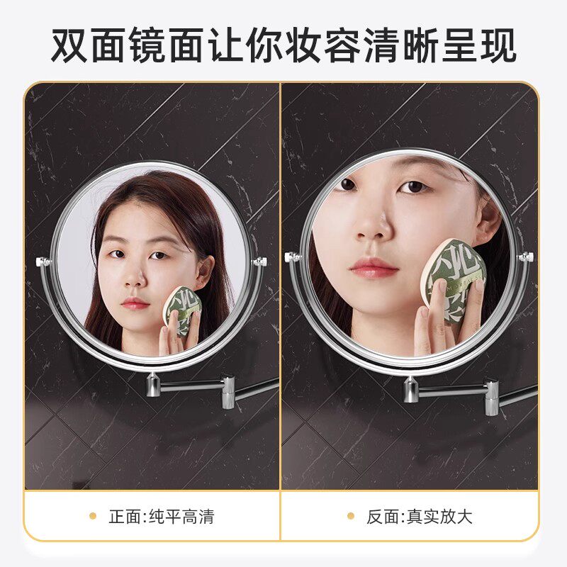 Japan Import Bathroom Makeup Mirror Wall-mounted Folding telescopic free punching toilet Double face comb Makeup Magnifier-Taobao