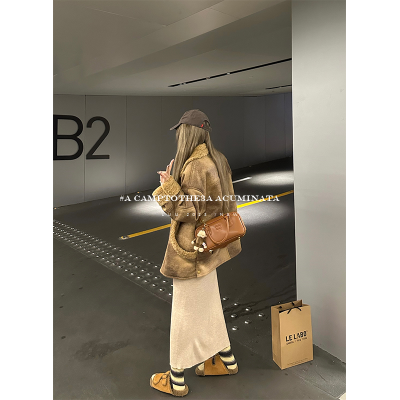 LUU Peach Joyful thickened fur integrated lamb wool jacket female blouse autumn winter locomotive clothes loose fur coat sloth-Taobao