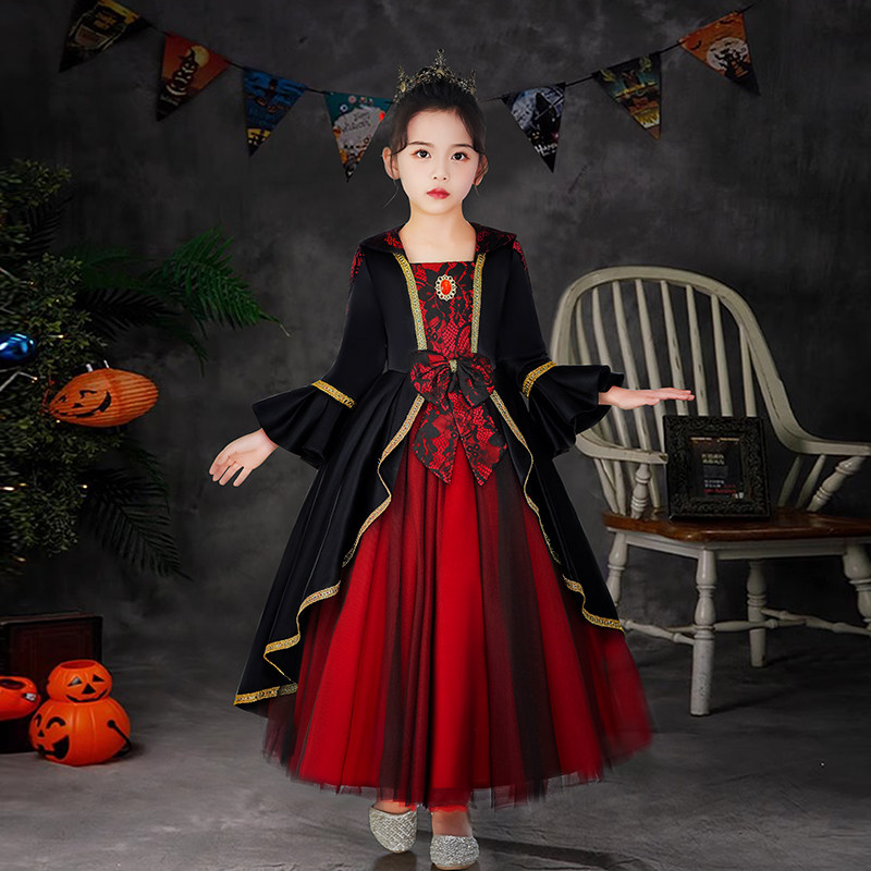 Halloween Children's Clothing Girl Vampire Queen Princess Dresses Girl Witch Show Cosplay Show Cosplay-Taobao