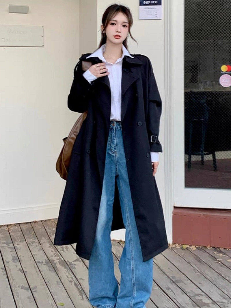 Small Fragrant Wind Suit Windsuit Jacket Lady Spring Autumn Season Thin 100 Lap Loose West Suit Little Guy with a knee coat-Taobao