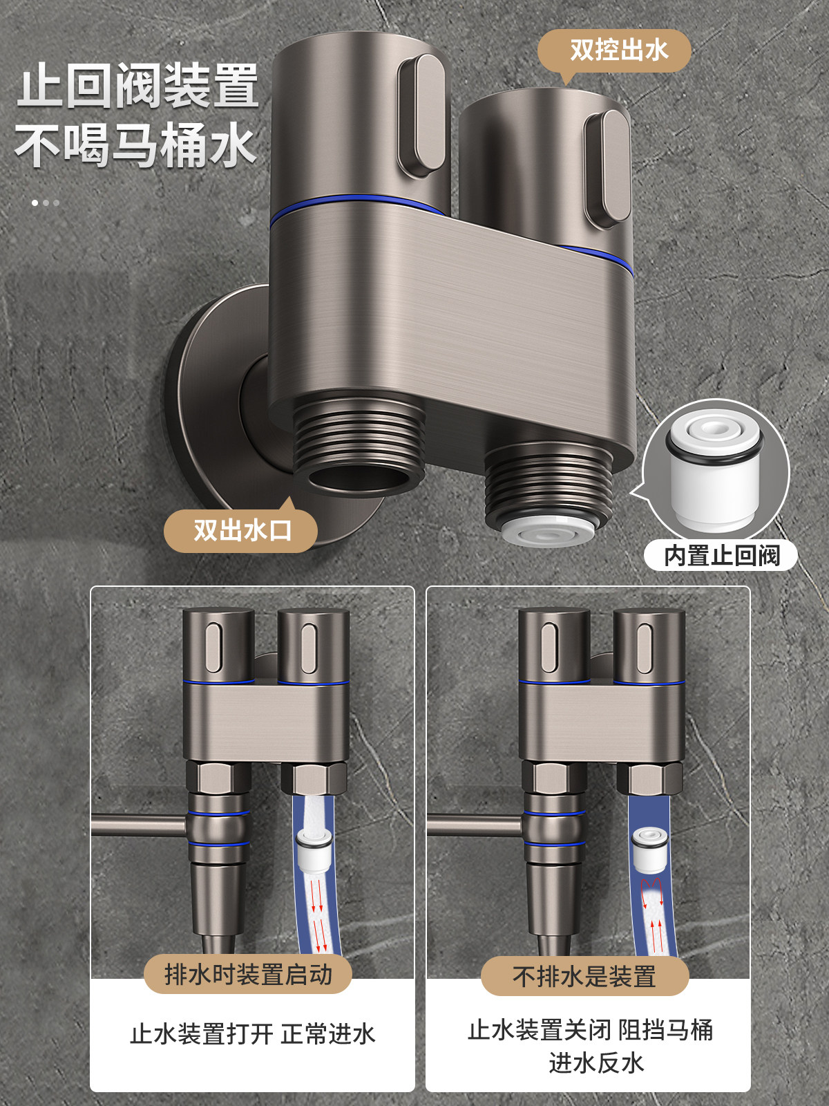 Full copper body water-crossing ash-in-two-out angle valve spray gun toilet partner toilet wash flush toilet double water-Taobao