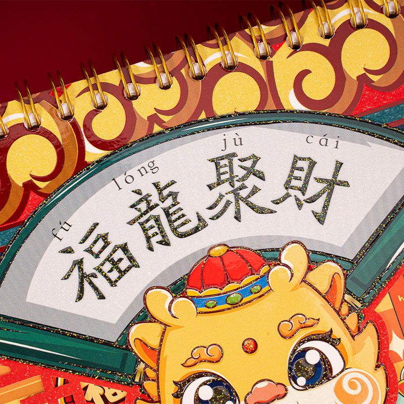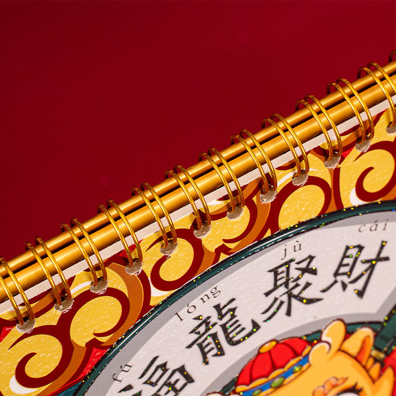 2024 Dragon Year Chinese Brief Festive Pearl Red Fine Sculpture Art Business Enterprise Ad Desktop Lunar Calendar Bronzing New Year Gift Home Creative Big Plaid Plan Calendar Desk Calendar-Taobao