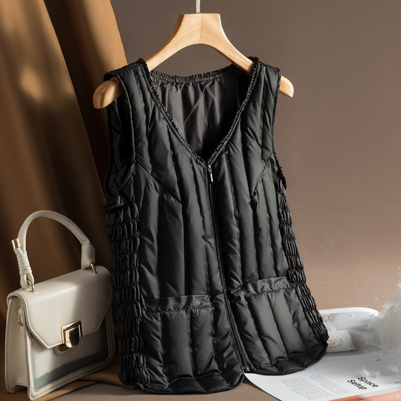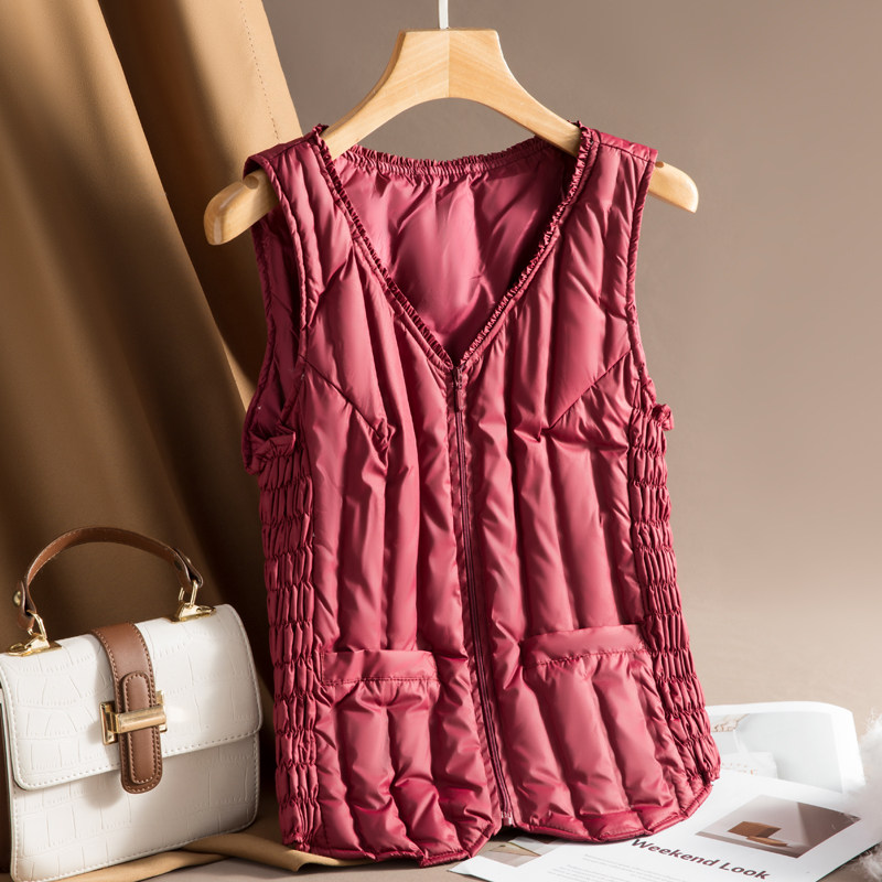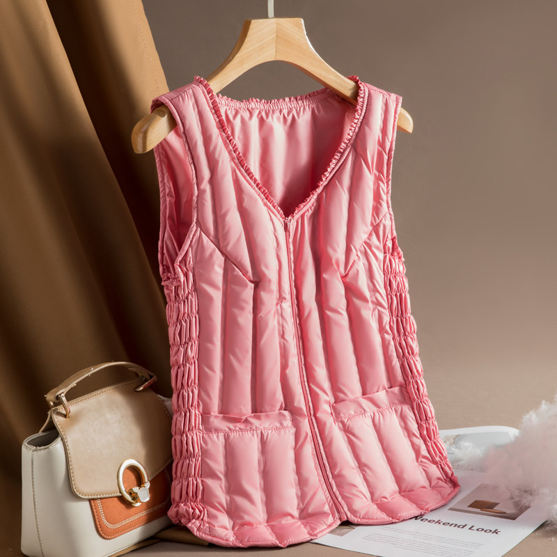 New light and thin down waistcoat female winter short inside wearing body down jacket Jacket Bottom Warm Kampo shoulder waistcoat-Taobao