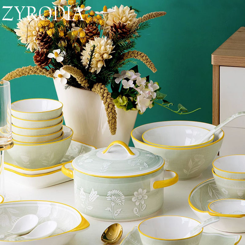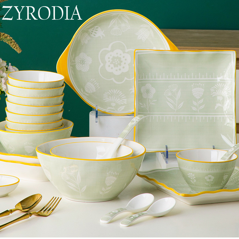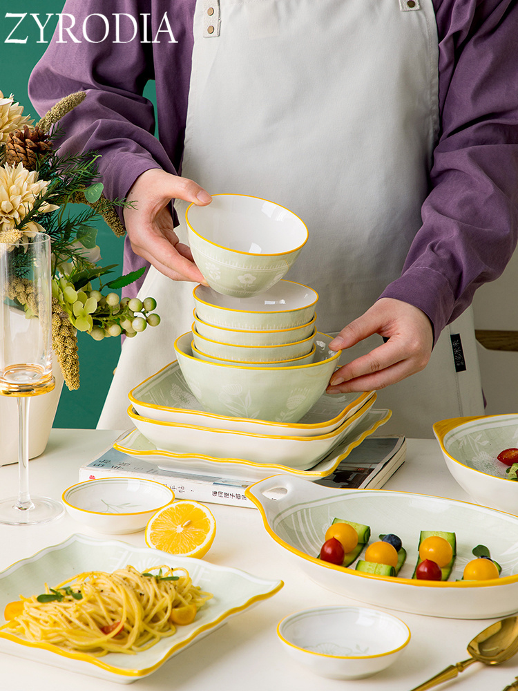 ZYRODIA2023 Bowl Dishes Suit Home Day Style High-end Ceramic Cutlery Fresh glaze Lower color bowls disc Joe moved-Taobao