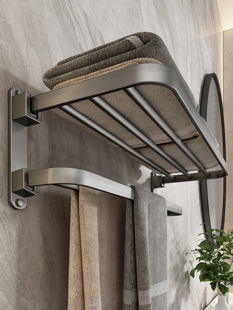 Whirlda Gun Grey Space Aluminum Towel Rack Free to punch toilet Bathroom Shelf Wall-mounted Bathroom bathroom-Taobao