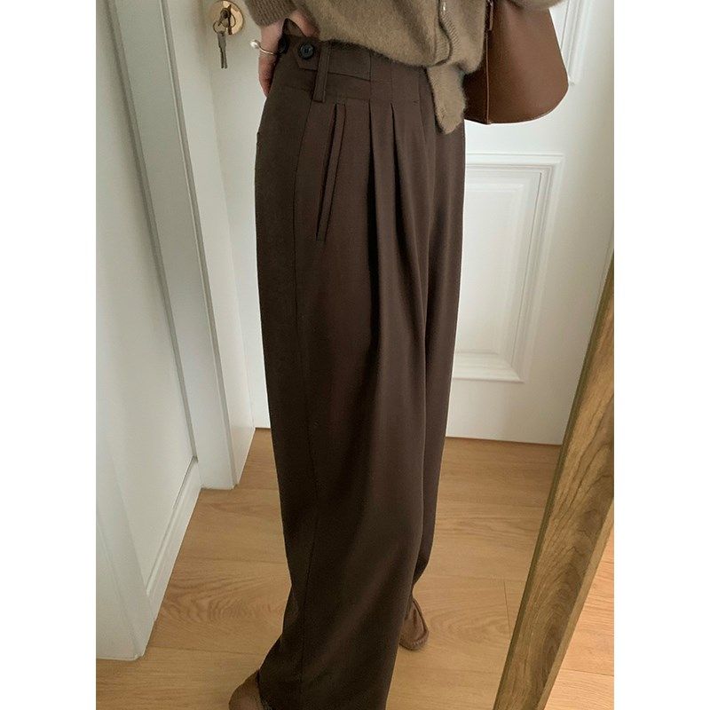 Curry Superior Sensation Woman with high waist 100 lap wool Western dress pants-Taobao