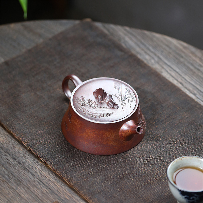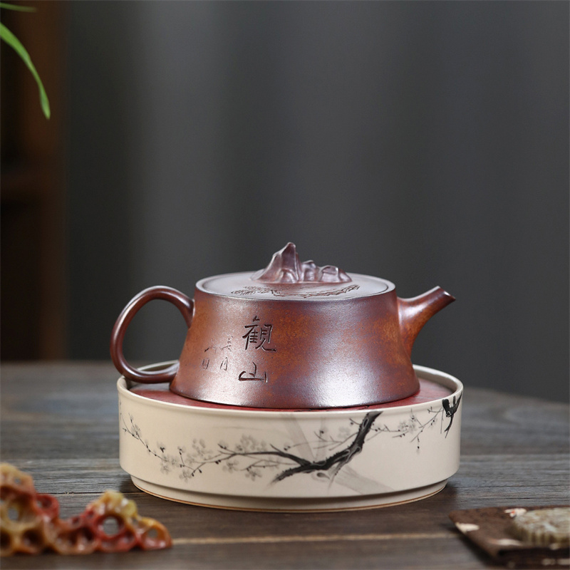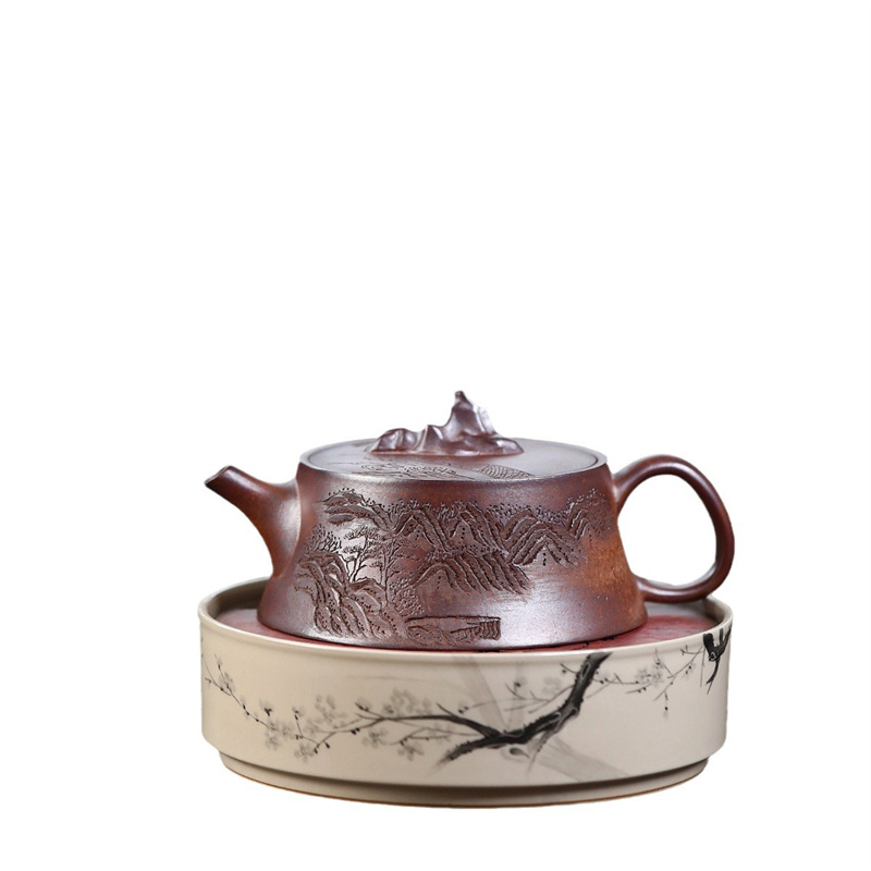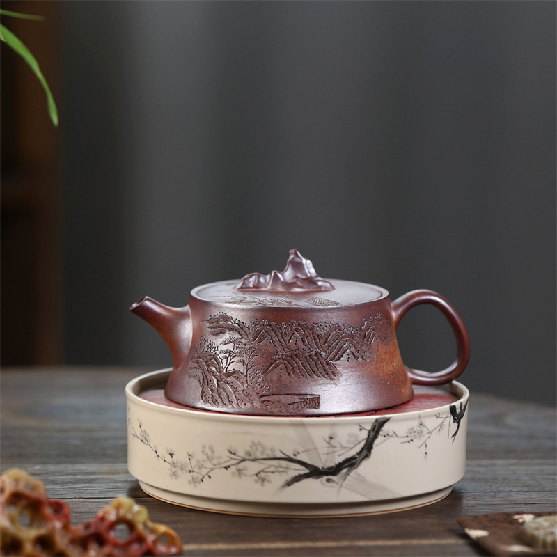 Guan Shan Dragon Kiln Warm Firewood Burning Parent Hand Lettering Painting Teapot Vegetarian Ixing Purple Sand Pot Kongfu Tea Furniture for Home-Taobao