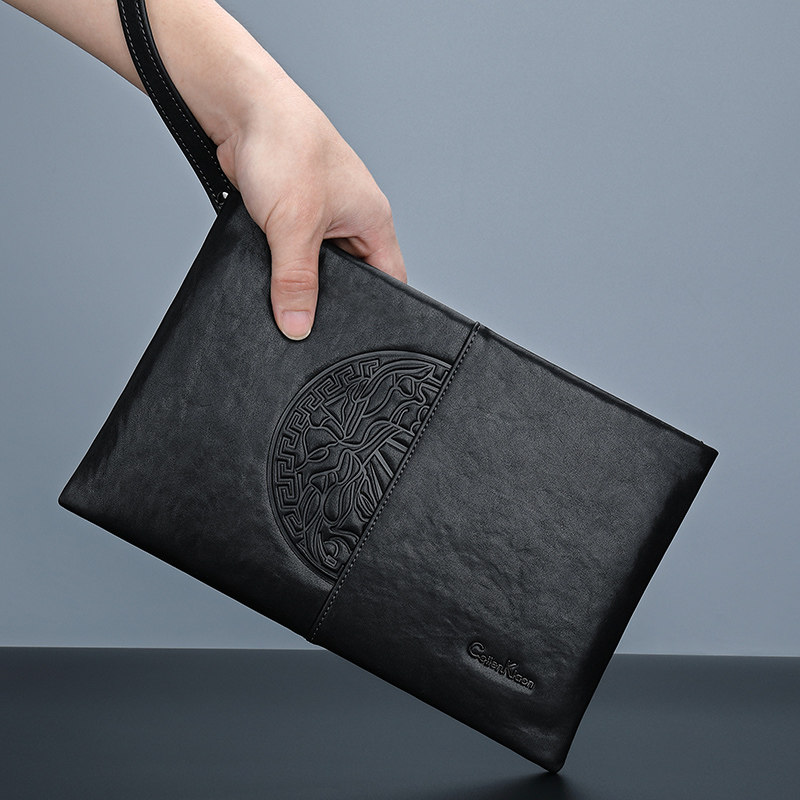 CoilenKlaon men's real leather large capacity hand with Baotou layer Bull Leather Casual Fashion Send Boyfriend Envelope Bag-Taobao