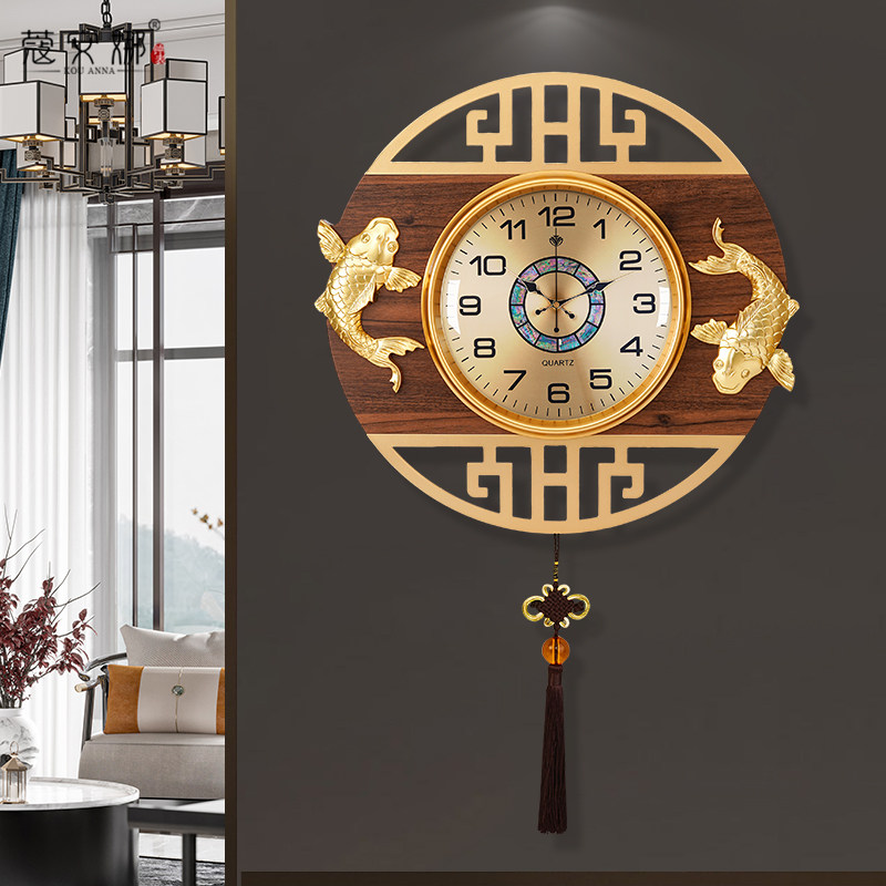 New Chinese light extravagant hanging bell living room 2023 new decoration timepiece home hanging wall silent clock atmospheric quartz clock-Taobao