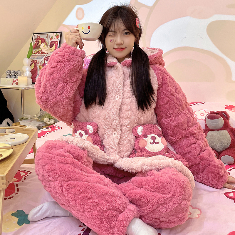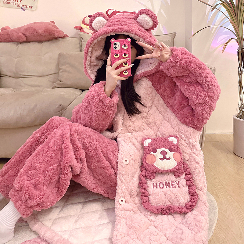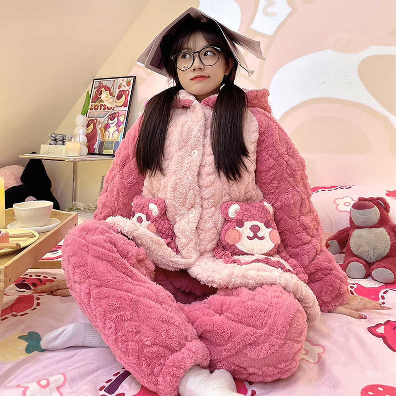 Coral Flannel Triple Clip Cotton Padded Jacket Women's Winter Day 2023 New Thicken Plus Flannel Flannel Sumpsuit-Taobao