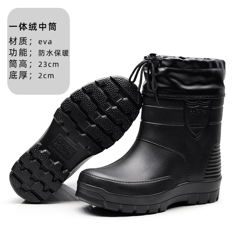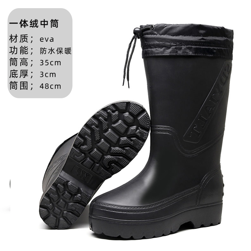 Winter Fishing Shoes Plus Suede Integrated Foam Warm Waterproof Rain Shoes Men's Long Cylinder Thickened Cotton Rain Boots Carwash Non-slip-Taobao