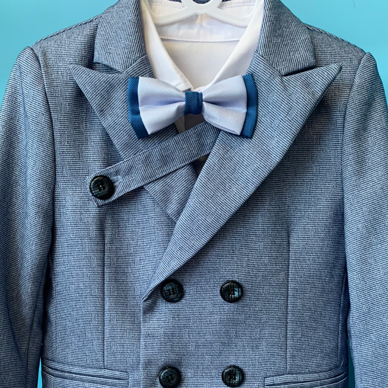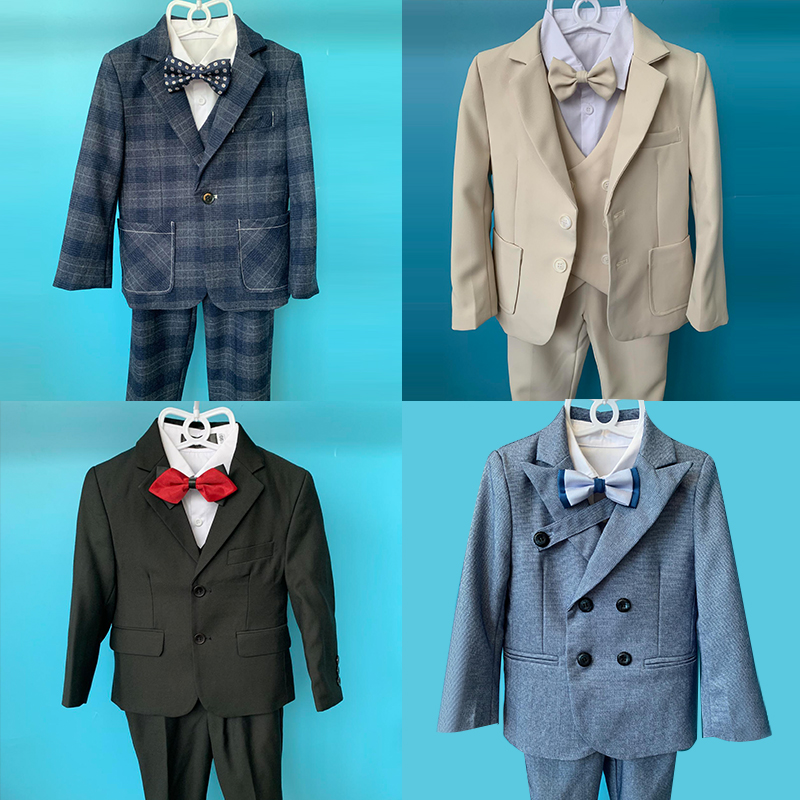 Boy gown Inlenty wind suit suit children Western suit Three sets silver rice yellow black autumn winter plus suede blue plaid-Taobao
