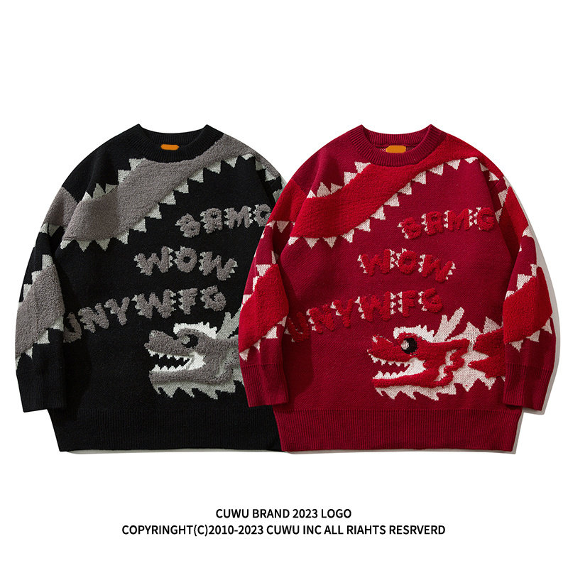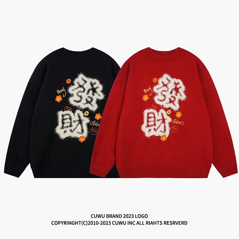 cuwu New Year's new year Long year qualified red sweater women Winter new Lazy Wind Knit Undershirt Blouses-Taobao