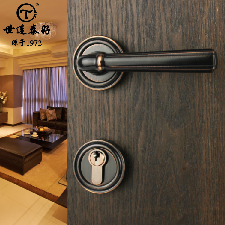 Taiwan Selian Tai Good American black door lock full copper indoor bedroom pure copper room silent solid wood door lock handle