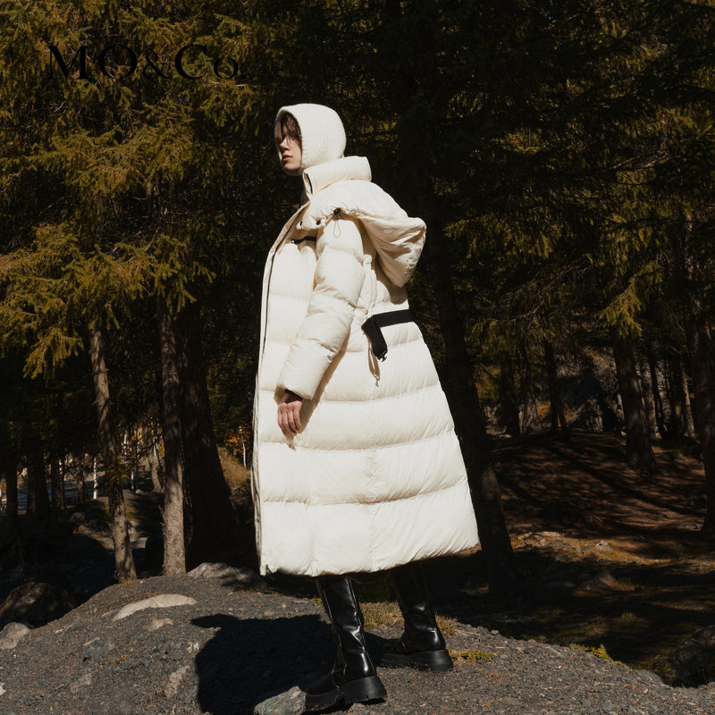 (90% goose down) MOCO2023 Winter New pint No bile suede with waist belt loose and long down jacket jacket woman-Taobao