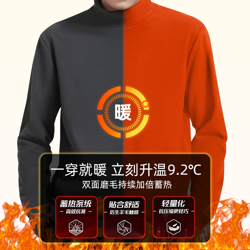 Real Visas semi-high collar bottom-shirt male autumn winter bifacial dush with thickened inner hitch male long sleeve t-shirt-Taobao