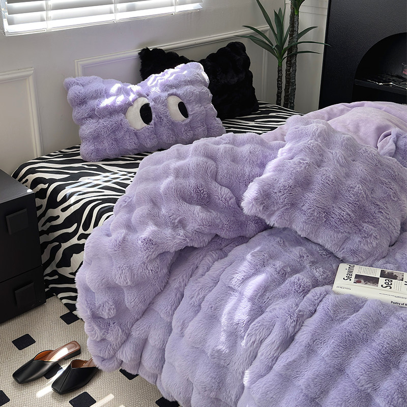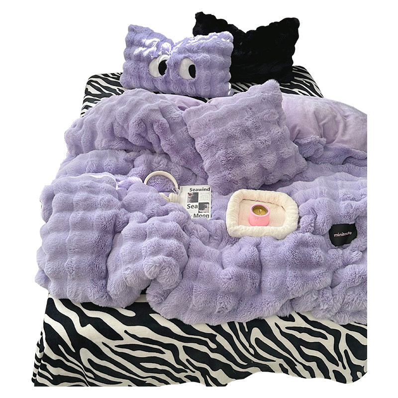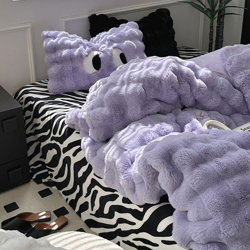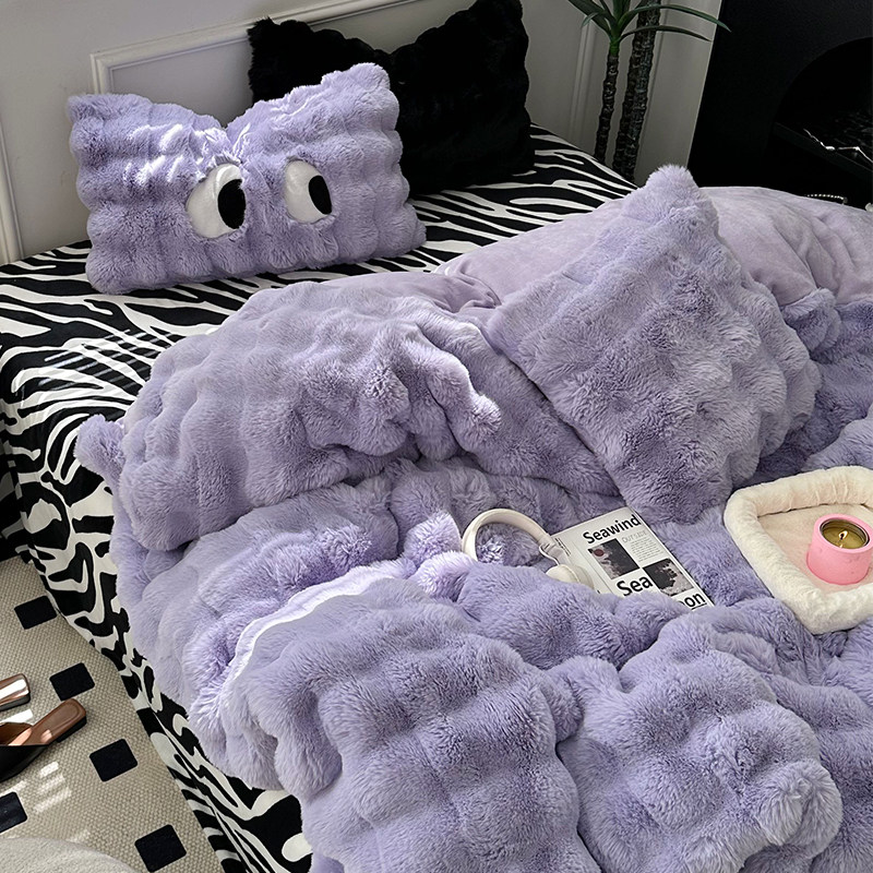 ins Han wind mixed with otters rabbit suede thickened with 4-piece double face suede quilt cover cute large eye milk suede 1 8 bed sheet-Taobao