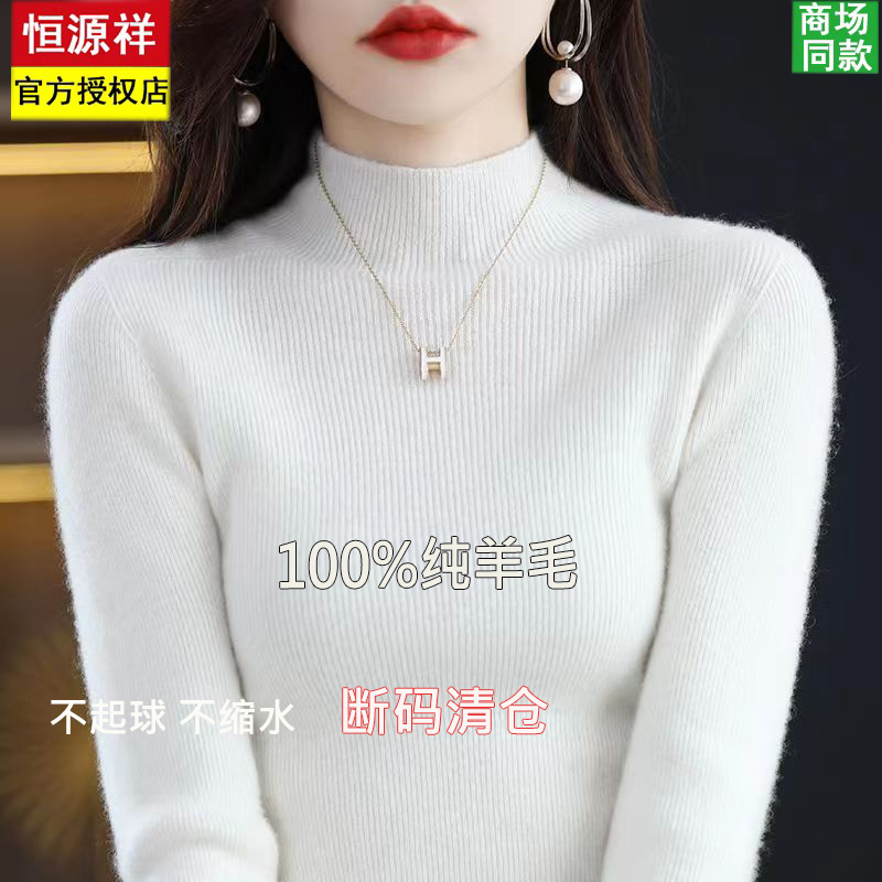Hengyuan Xiang sheep sweatshirt female autumn and winter half high collar pure color wool knit sweater with 100 hitch cashmere undershirt-Taobao