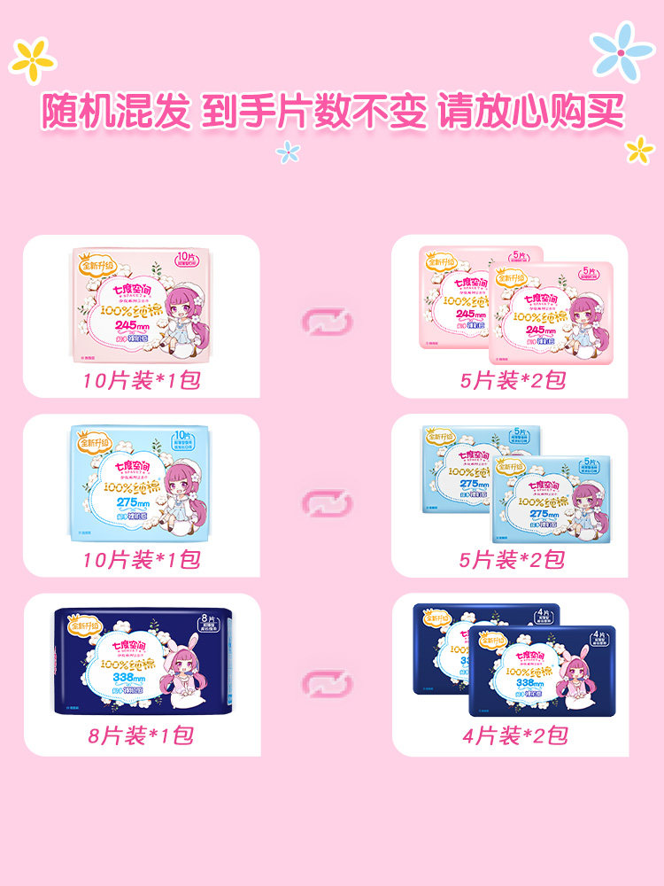 Seven Degrees Space Adolescent Sanitary Napkins 275 Night with pure cotton ultra-thin breathable dry Aunt Towel Official Flagship Store-Taobao