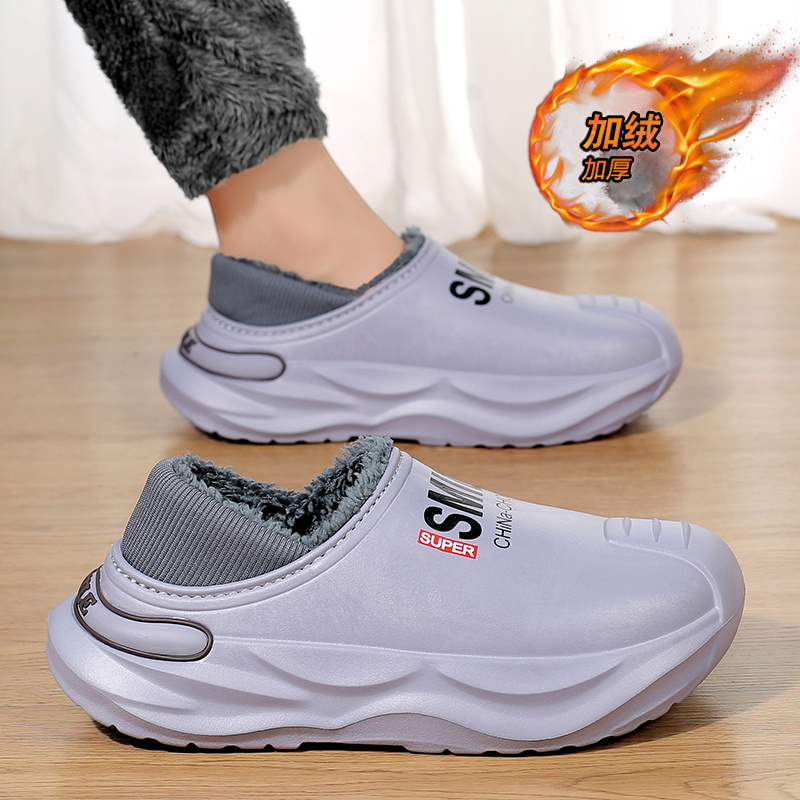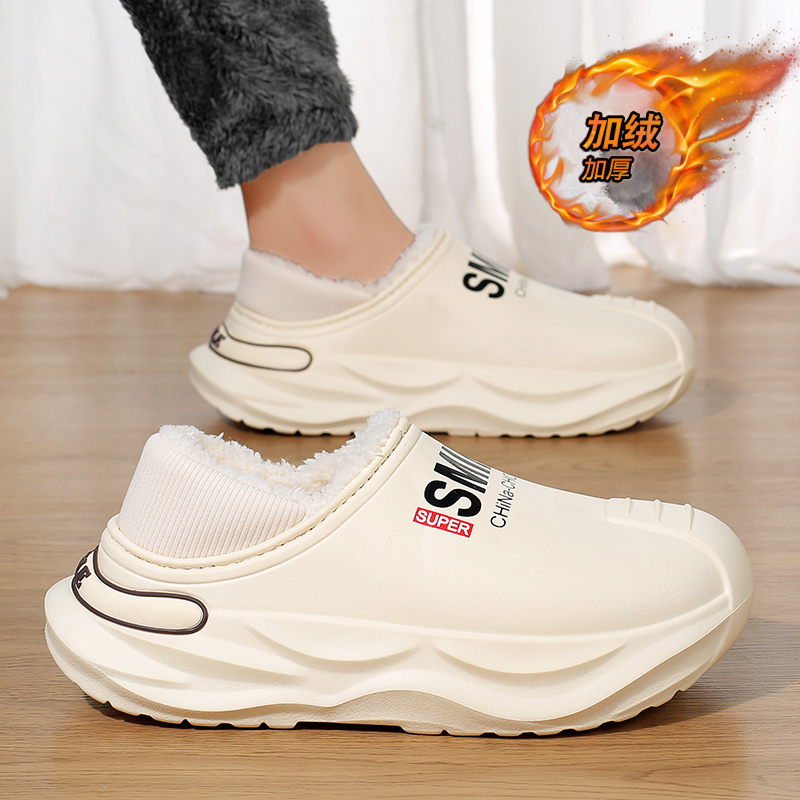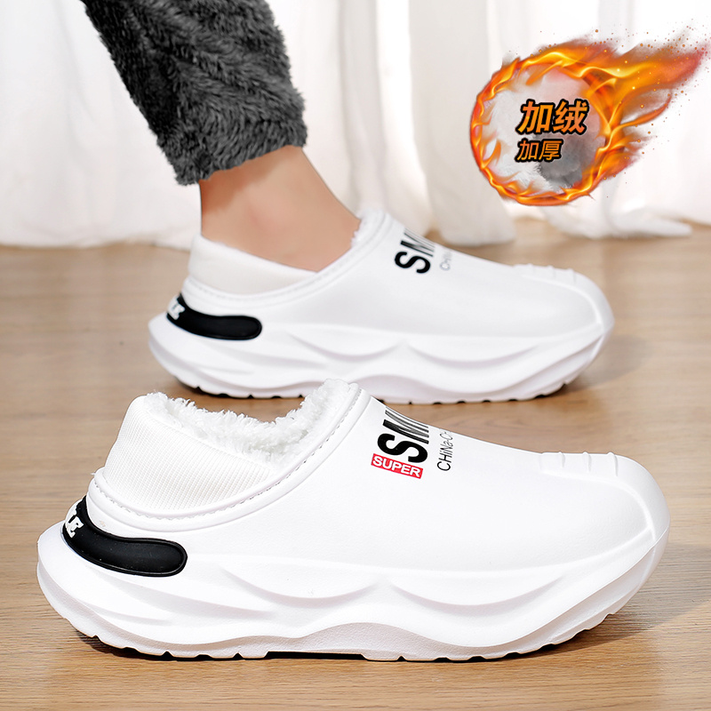 Cotton slippers men winter gush warm leather hair integrated bag heel cotton shoes non-slip waterproof soft bottom Tohoku Home slippers-Taobao