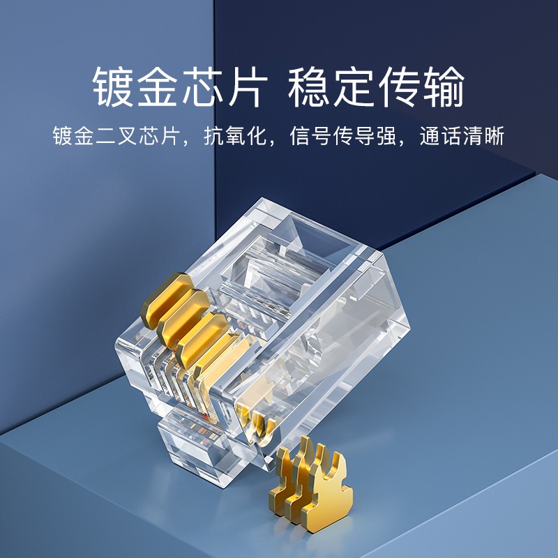 Autumn leaf original phone crystal head plug holder connector head RJ11 connector two-fork 4-core four-core butt plug-Taobao