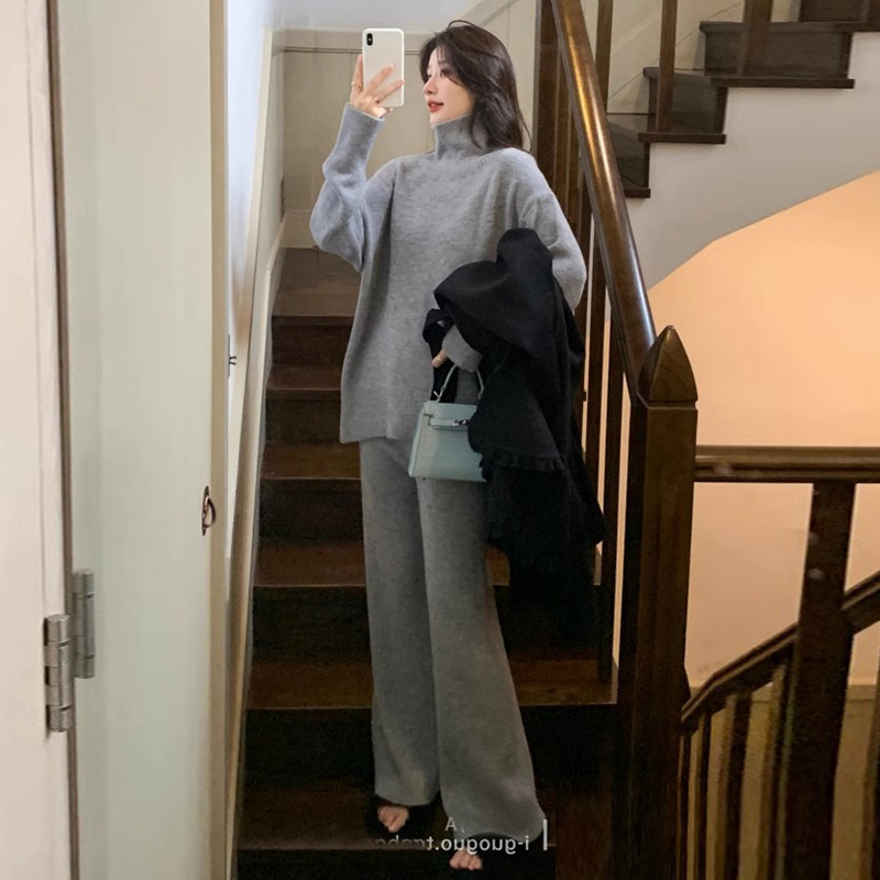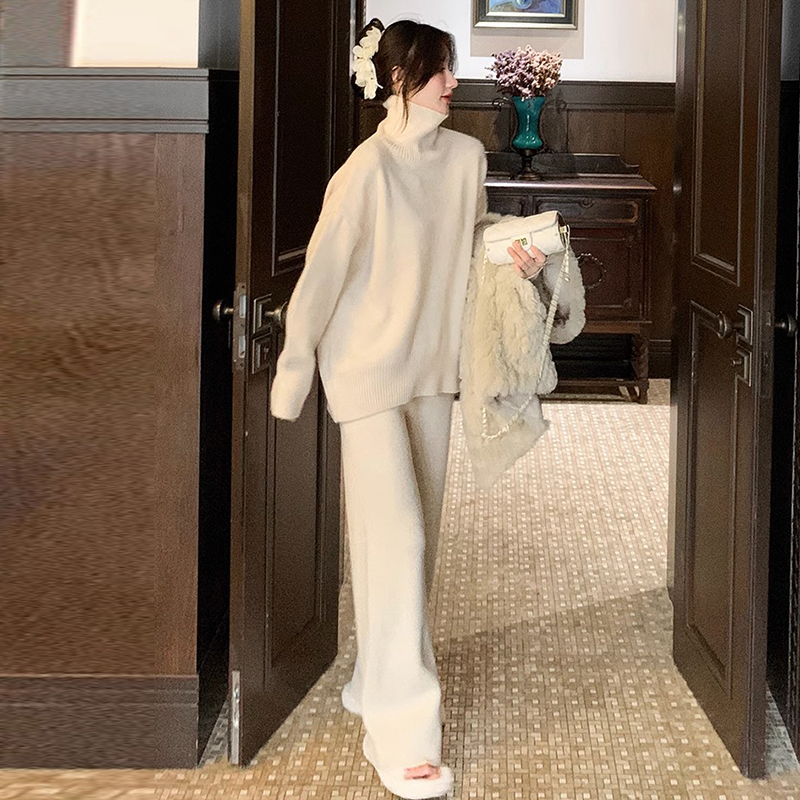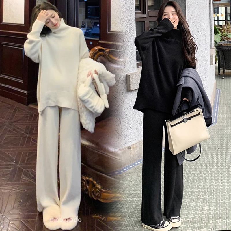 Pregnant woman Autumn winter clothing suit 2023 new high collar trendy foreign air knit sweater fashion loose up and down two sets-Taobao